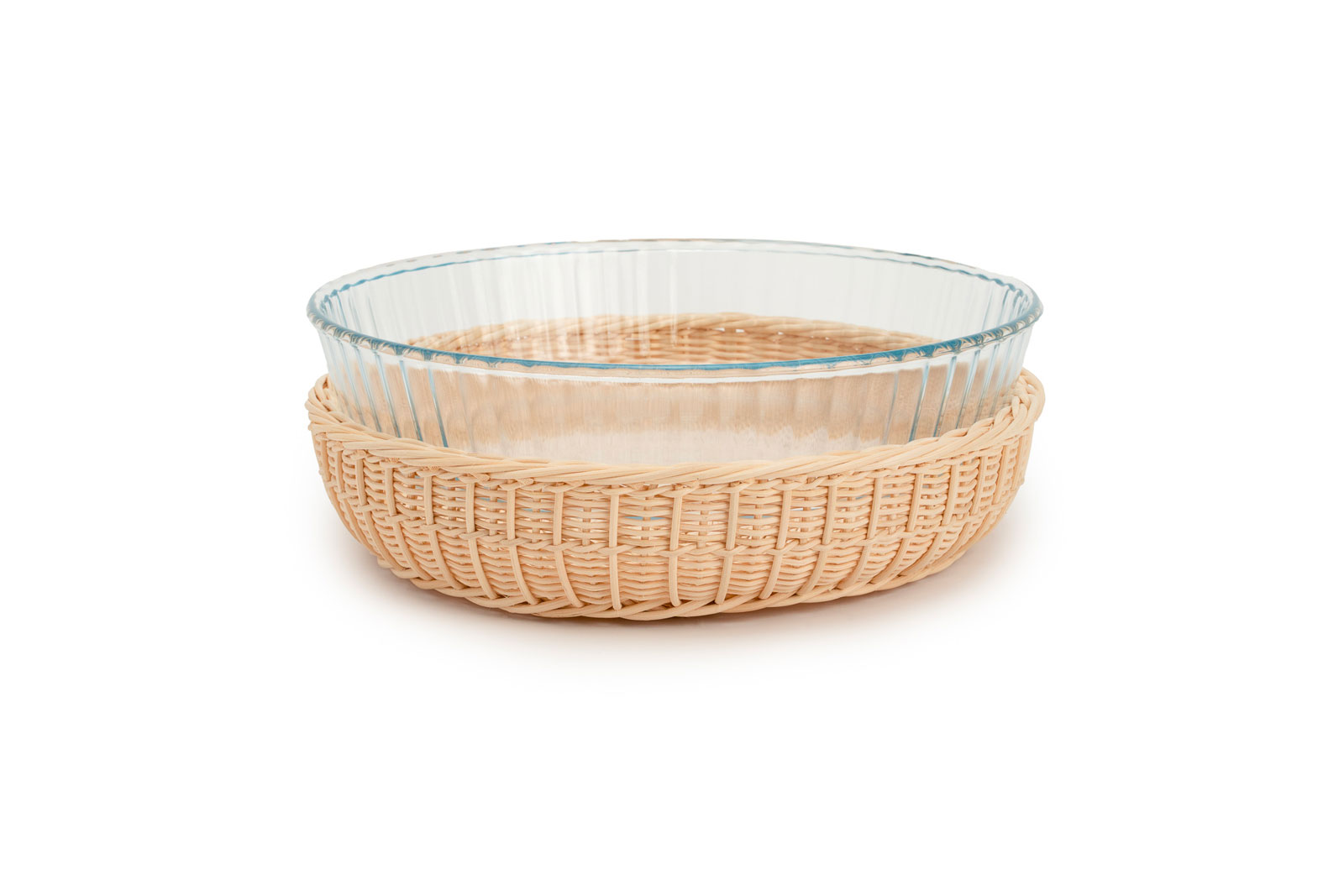 Descrizione: Questa tortiera, sinfonia di eleganza e semplicità, è realizzata a mano da nostri maestri artigiani. Il cesto è incluso di stampo Pyrex, perfetto per presentare deliziose torte direttamente in tavola con stile e facilità. Presenta un design elegante ed è rifinito con una verniciatura trasparente all'acqua che lascia inalterata la naturalezza del materiale.